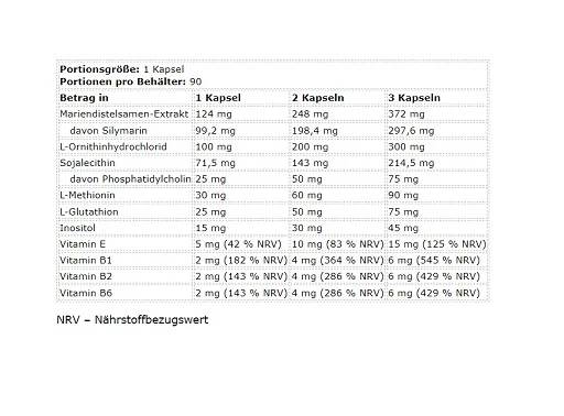Mariendistelsamenextrakt (Silybum marianum; 80 % Silymarin), L-Ornithinhydrochlorid, Sojalecithin